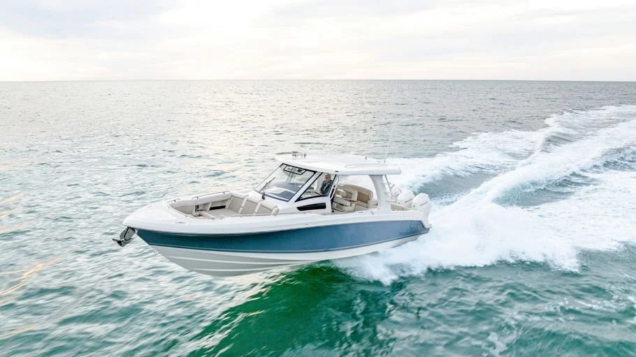 The 350 Realm is Boston Whaler’s answer to buyers who want a fishing boat that doesn’t look like a fishing boat. The build quality is what you expect from Whaler — unsinkable foam core, hand-laid fiberglass, and a level of finish that holds up after five years of saltwater use. The triple outboard setup is the right call here. You get redundancy, serviceability, and the ability to run shallow when you need to. The Joystick Piloting system is standard, which tells you Whaler understands who’s buying this boat.