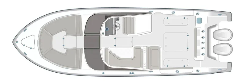 34 feet of owner-operated capability. Fishes offshore, cruises the Keys, docks like a 26-footer. Twin F350s deliver 55 mph and 297-mile range without the fuel anxiety.
