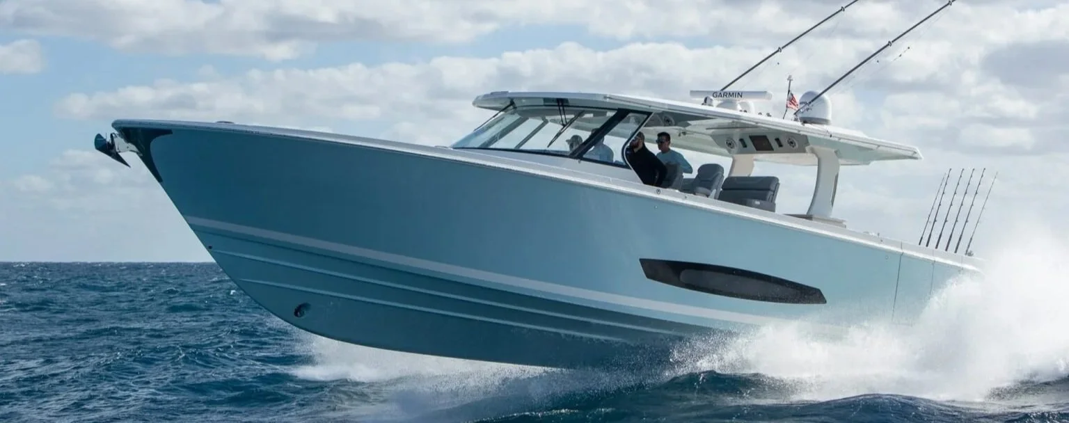 Sport-boat speed with cruising range: the Aquila 46 Coupe pairs twin V12 performance and Hydro Glide foils for 39-44 knot cruises and 400+ nm range, with two true staterooms and owner-operator ease.