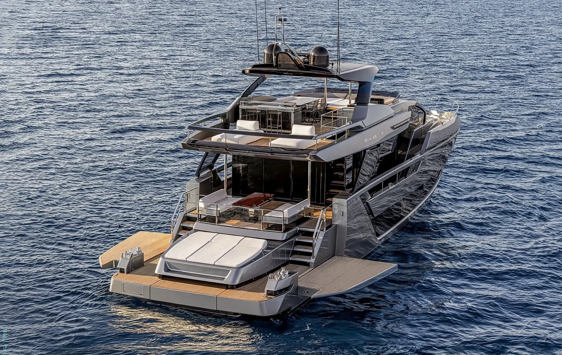The 82’ Diva is Riva’s answer to buyers who want flybridge space but refuse to drive something that looks like a floating apartment building. The hull is new, the V12 package is proven, and the 28-knot cruise speed is real. Build quality is where Riva separates from the pack—65 dB(A) at 22 knots in the master cabin tells you everything about how this boat is put together. The Officina Italiana Design team delivered a profile that reads more express than flybridge, and the fold-down quarter platforms add function without compromising the lines. This is a serious boat with serious performance.